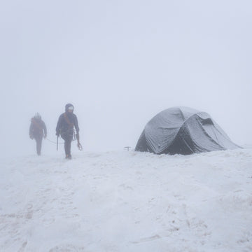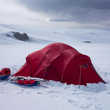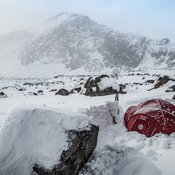 We awoke this morning to a howling gale and the sound of snow being hurled against the tent. So we turned over and went back to sleep. By 8.30, the wind began to lessen, so we ventured out to our Alpkit tent for breakfast. As the jerry cans had frozen even more overnight, getting the water boiled was a major undertaking!