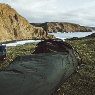 - Hooped Bivvy: Same as the above but with the addition of a hoop to hold the bivvy bag away from your face. Not quite the luxury of a tent, but you are heading in that direction. Our Elan hooped bivvy has proven it's worth to solo backpacker and bikepackers.