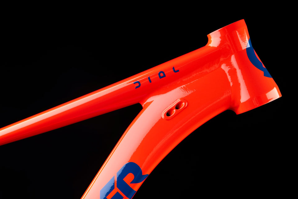 The Dial's low profile top tube gives lateral stiffness for improved power transfer and vertical compliance for comfort over long distance.